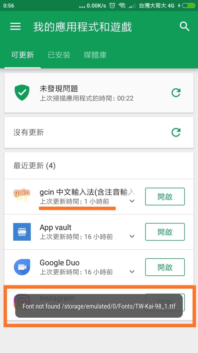 剛剛 release 新版,或許問題會改善。 看起來是因為有時候 memory 不足,font 不能 load 進來。目前是 try 2次,如果還是失敗,就放棄,只用系統的 font. edited: 1