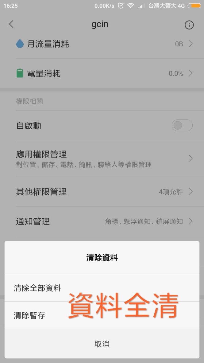 需要外部儲存的授權,如果不知道怎麼設定, gcin 工具→選單→匯出匯入全部→匯入全部 應該會跳出授權的視窗,這邊會需要讀取外部儲存。 這是暫時的解法。 edited: 1