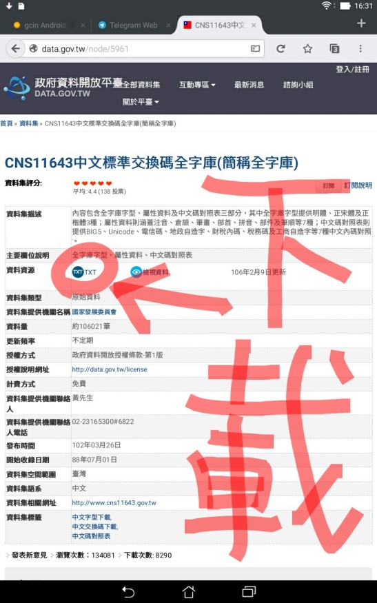 建議用「CNS11643中文標準交換碼全字庫」 http://data.gov.tw/node/5961 全字庫楷書字型檔為:TW-Kai-98_1.ttf 希望未來能支援Ext-B字型檔,如:「TW-Kai-Ext-B-98_1.ttf」;罕用字才能正常顯示。 | |||||||||||||