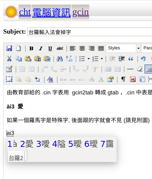 如果一個羅馬字是特殊字, 後面跟的字就會不見 (請見附圖) 只會顯示 à