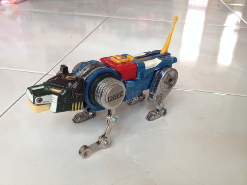 聖戰士是什麼,中年男子都知道過吧?不必我多說。 話說這隻藍獅子是我在小學時一位學長送我的,他送我時,牠就少了一隻左前腳。 以下是牠拆解後的零件狀況,很明顯可以看出少了一隻左前腳: