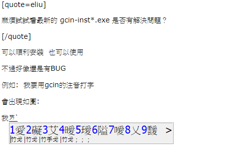 麻煩試試看最新的 gcin-inst*.exe 是否有解決問題?