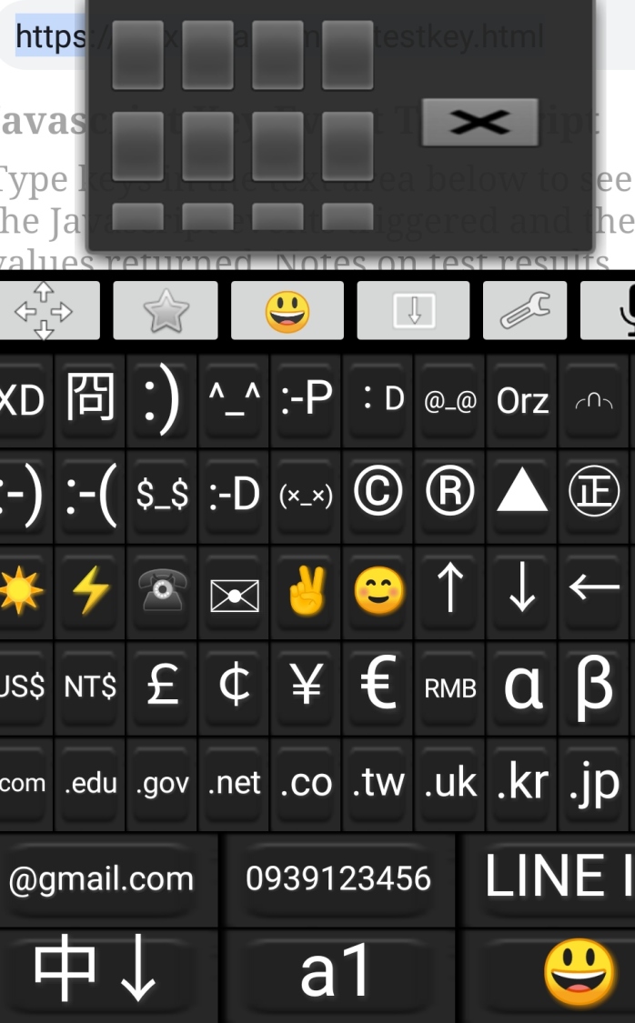 使用的手机型号blackberry key two,携带有实体键盘,只有alt, shift,sym 三个功能键。