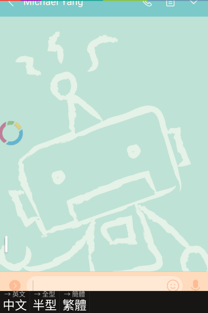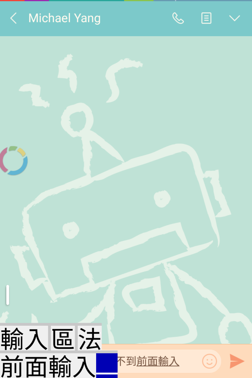 同文輸入法在輸入中文的時候會將整個 Line app 上移避免遮住 Line 輸入框. |