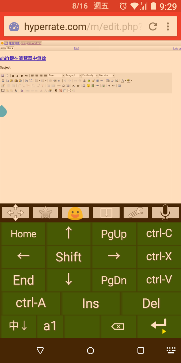 抱歉我剛沒說清楚,是android裡和方向鍵放一起的shift鍵。如附件所示。我想按shift+方向鍵來選字和複製,但shift無效。