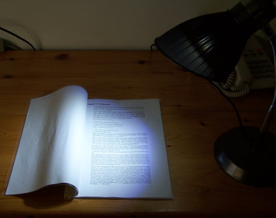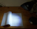 試開看看!「哇靠!超亮!」,檯燈要墊高一點,才不會太亮。(這張照片是經過相機校正之後拍出來的,不太能突顯真正看到的亮度。)