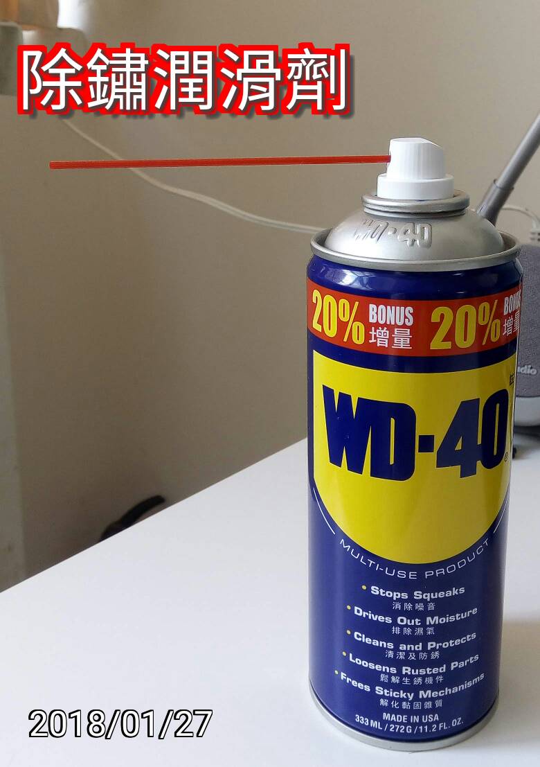 關房間的門時門軸摩擦出很大的聲音,影響睡眠。用針車油潤滑油門軸沒用。 這時候要用除鏽潤滑劑、除鏽潤滑油去噴門軸。用除鏽潤滑劑、除鏽潤滑油噴門軸了之後,要馬上轉動門軸讓除鏽潤滑劑滲透到各個部位。 這樣關房間的門時門軸的聲音就變小了。這邊是用 WD-40 除鏽潤滑劑。沒殺價的價格是 $120,應該沒被騙? 使用 acer liquid zest plus+ AndCamera 拍攝/裁剪/打上文字/日期 | |||||||||||