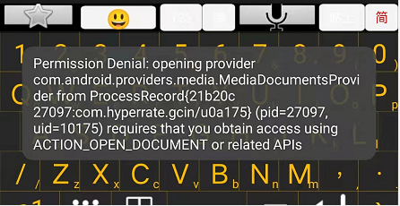 這個應該是你有用相片當鍵盤背景,因不明原因權限消失,請重新選擇照片,或是取消用照片當背景。