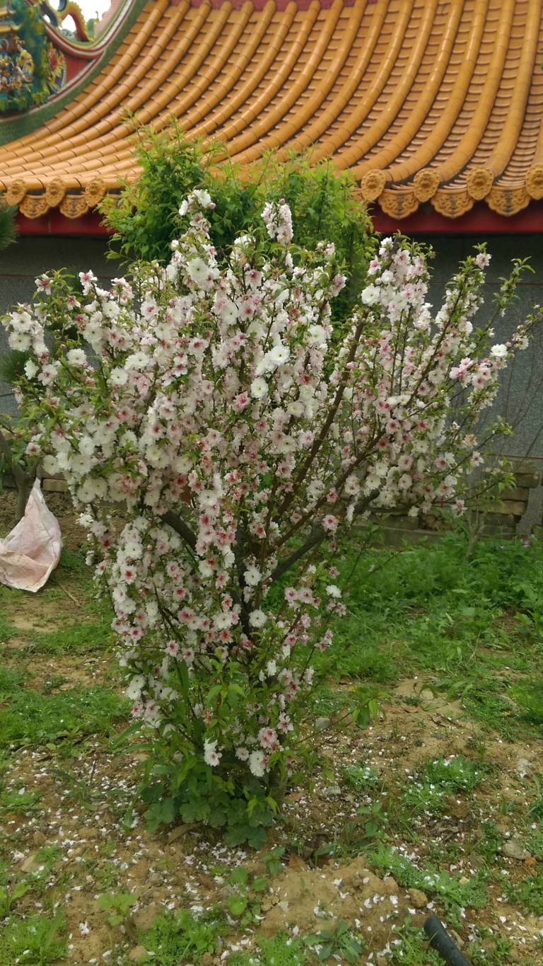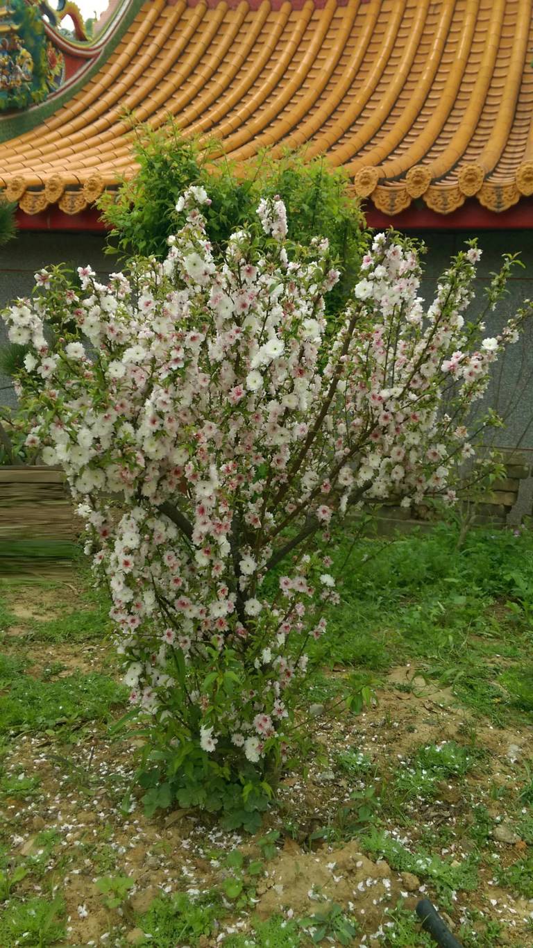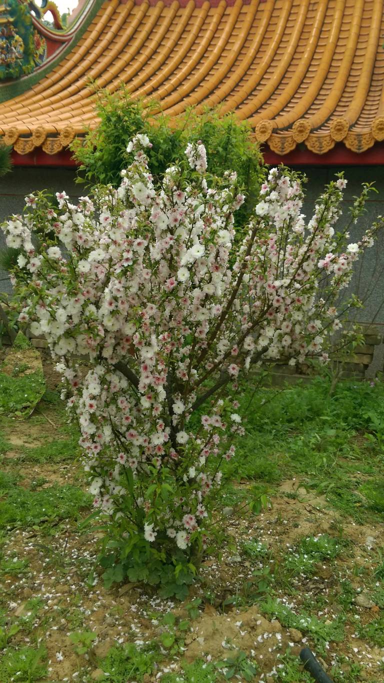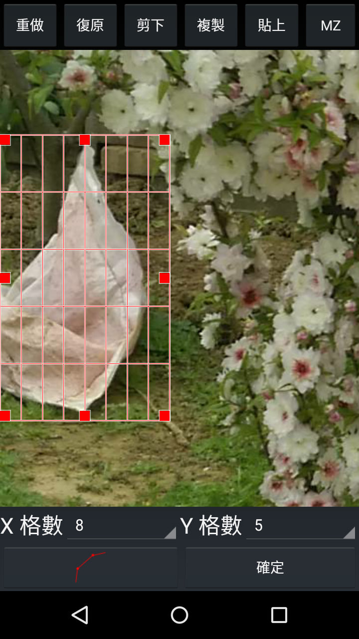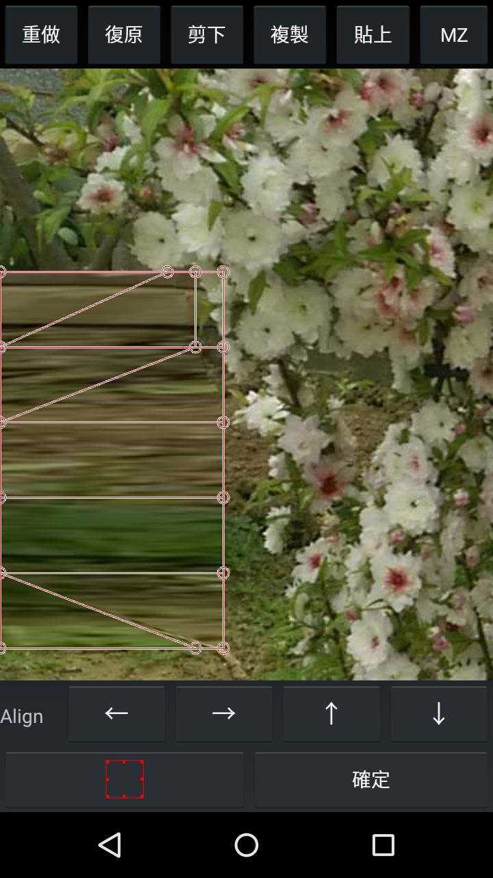 開滿花的郁李旁邊有一個煞風景的麻布袋 點 選擇控制點點箭頭向左邊對齊,由最旁邊開始。這樣就等於用旁邊的綠色草地&牆拉大來填補。