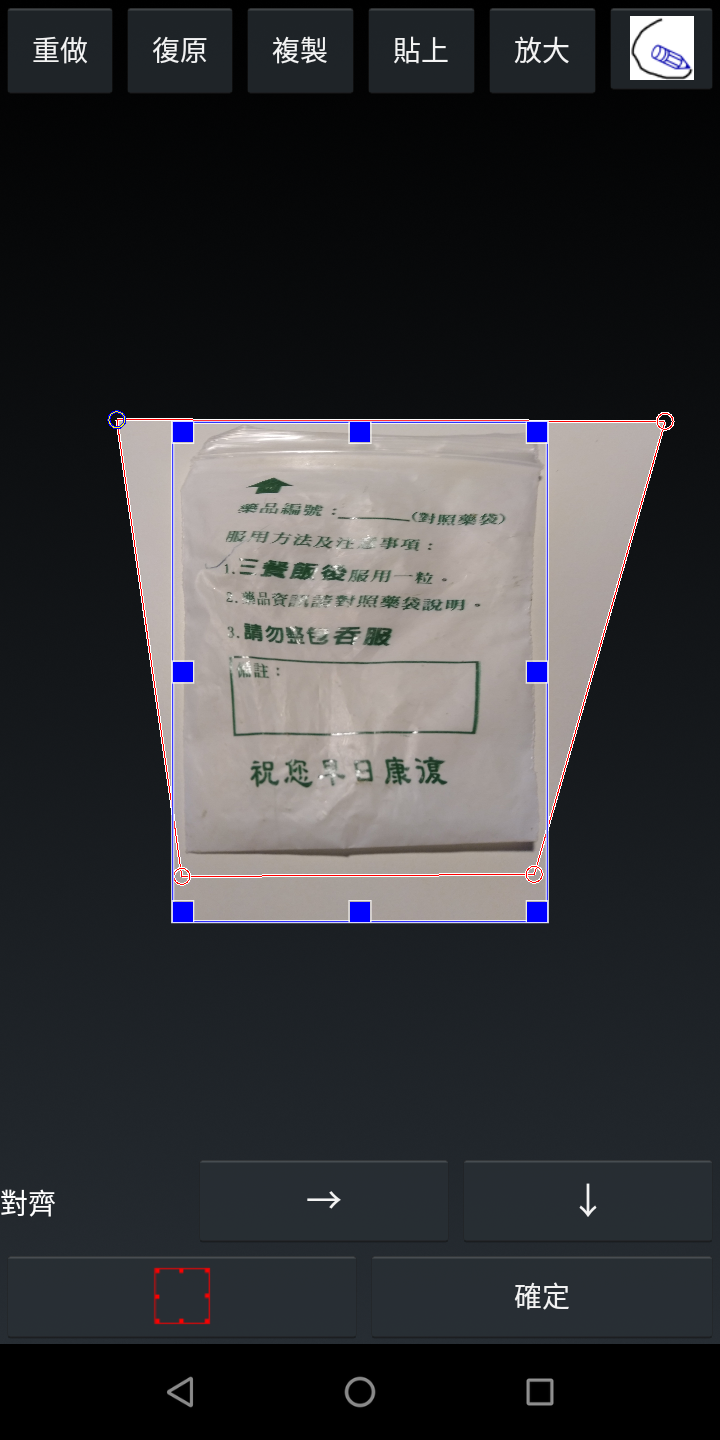 同樣的方法,用 1x1 格,可用來修正梯形/桶狀/X型變形。為了簡化起見,只用1x1,右邊中央的凹下去,可用1x2修正。 點 底圖→梯形變形 or 桶狀變形 即可產生全圖的 1x1、1x2