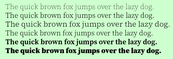 一般文章大約會用到三到五種不同的字型,超過這個數目就會變得好像菜市場了。整體來說 VF 讓字型、字體的運用變得更加有效率,尤其其中的視覺尺寸(optical size),更是精確排版需要的(就是字體在大小不同的 size 時,他的筆畫置放的相對位置應該調整,否則會變得很突兀,想像一個字放大 200 倍後的情況)。