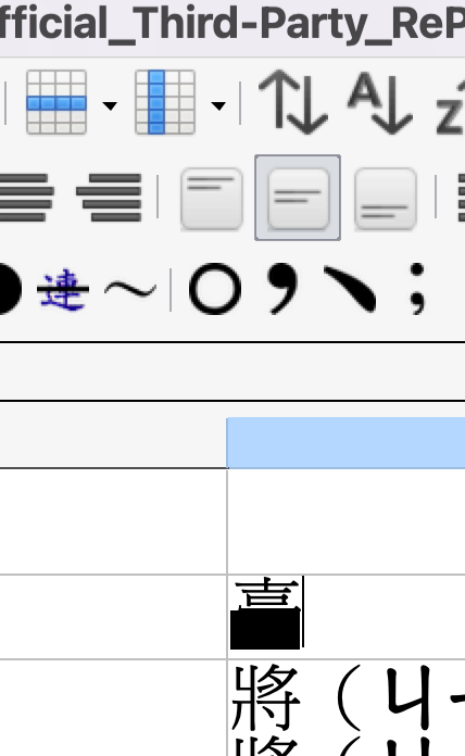 所以這到底算是 LO Calc v7.5.2.2 的錯? 還是 中華民國教育部標準宋體UN 的錯?