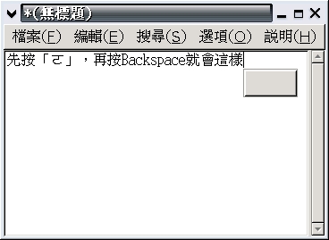 喔~ 經老大一說,我才發現: 原來從「ㄅ」到「ㄙ」,按Backspace都可以使組字小方框消失, 但從「ㄧ」到「ㄦ」,按Backspace就無法使組字小方框消失。 以上兩者的差別在於「ㄅ」到「ㄙ」是顯示在組字方框的第1位, 「ㄧ」到「ㄦ」是顯示在組字方框的第2或3位, 目前只有第1位的注音符號被清除時,組字方框才會自動消失。