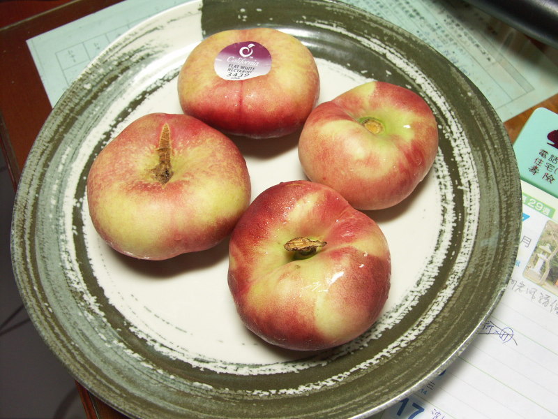 還有一種帶細毛的扁桃,類似水蜜桃,大潤發就可以買到,有人稱為蟠桃。與這邊的不同,這邊的桃子表面是光滑的,沒有帶毛,所以稱為油桃。