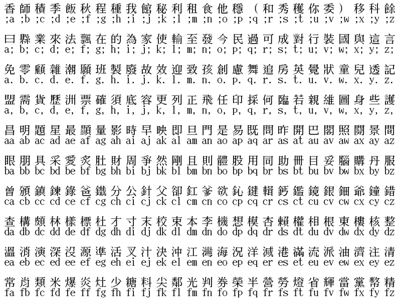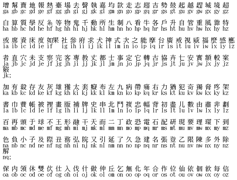 日日=a;; (a=日 + ;,但因二字碼都已有定義了,a;=曰,故改採三碼 a;;)