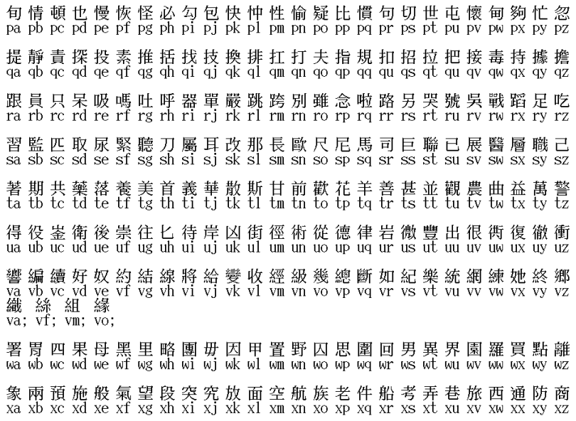 - 調整過後最佳化的標點符號、一字碼及二字碼的輸入。