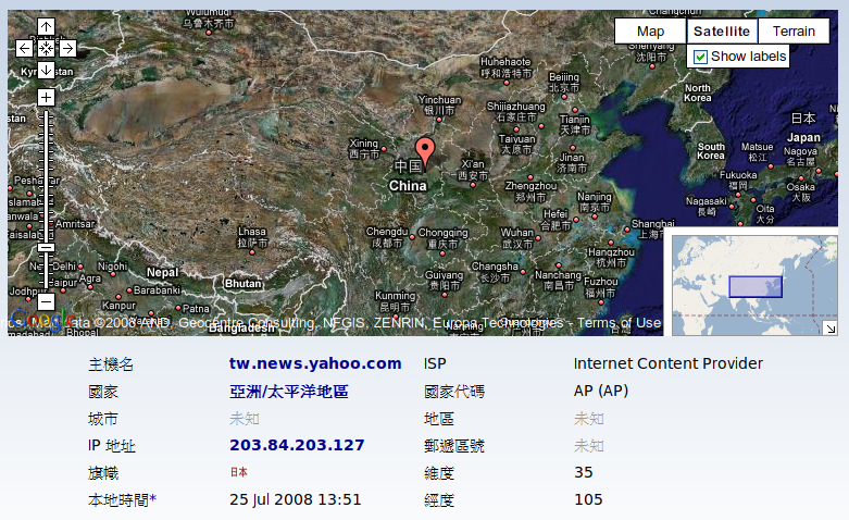 1 Yahoo! 奇摩新聞的主機在甘肅?