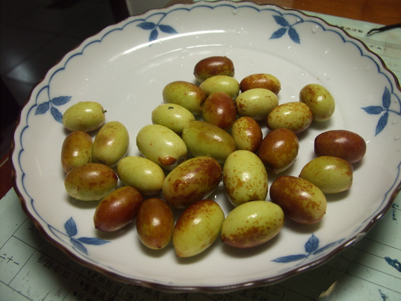 新鮮的生紅棗 今天買的,在新竹馬偕醫院側門。滷味透明盒的大小,一盒 $100, 兩盒 $160。有甜,味道還可以,也不算好吃。 新竹大潤發忠孝店也有賣。