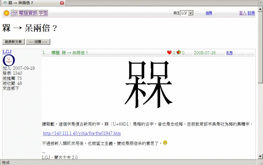 大家的browser 用什麼字型的呢? 近來我轉用台灣的標宋體, 雖然筆劃與常用的新細明體差別很大,
