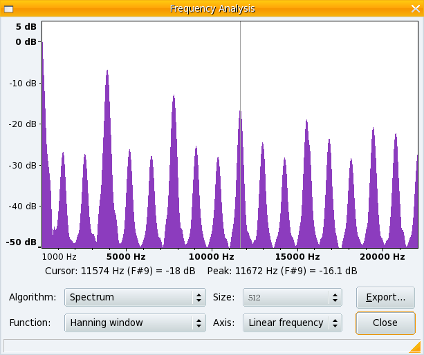 底下是自製的磁場示波器量測電扇得到的磁場波形,沒想到電扇產生的磁場頻率還蠻高的。聲音的編輯是用 audacity