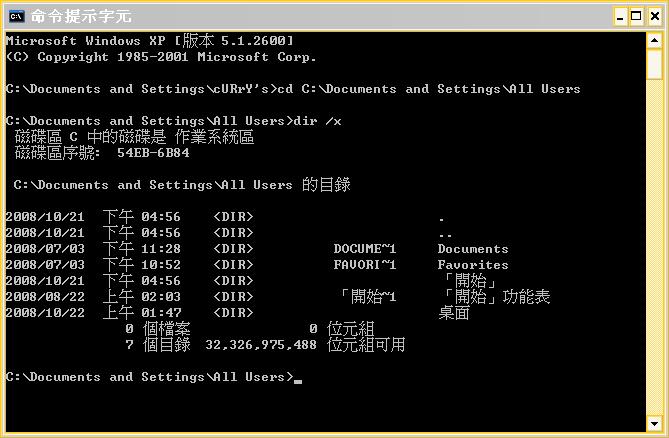 install-tl 這個 Perl script 是在建立 C:\Documents and Settings\All Users\「開始」功能表\程式集\ 裏的 TeXLive 選項時出問題的。「開始」功能表這個檔案夾名的 Big5 編碼是 0xA1 75 B6 7D A9 6C A1 76 A5 5C AF E0 AA ED 其中含有 "\" (0x5C), 使得 Perl script 在做 "\" ==> "/" 的轉換 (DOS style path separator vs unix style path separator) 時破功。 這不是改用英文檔名就解決得了的。 「開始」功能表 這個系統內定的檔名應該是不能改名的吧? 另外再附的圖是在 C:\Documents and Settings\All Users 做 dir /x 的螢幕快照 可以從圖中看出平常在 Windows 裏看到的「文件」有英文本名 Documents, 但是「開始」功能表就是中文的本名。所以原先推測的英文本名的想法是不可行的。 所以,可否在 Perl script 裏取得路徑名稱,先轉成 unicode,做"\" ==> "/" 的轉換,再轉回 Big5, 然後執行 mkdir? | |||||||||||||