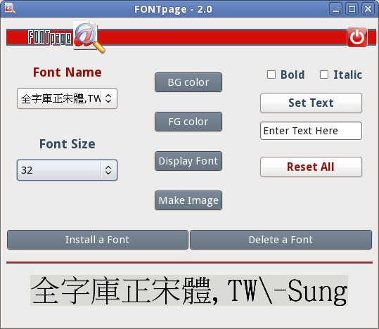fontpage 很有發展性,他可以安裝、移除系統上的字型。 |