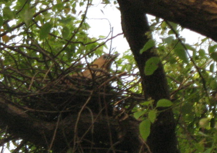 我家附近一顆大樹上有一隻鳥築了個巢,正在坐巢。一隻大鳥,我從來沒有看過,像一隻雞那麼大,是金黃色的,眼睛大大圓圓的,嘴巴尖尖的,不知道是什麼怪鳥,等我有空去拍張照片,大家來鑑定一下,不過,樹有點高,所以,不容易拍到近照,我沒有望遠鏡頭。當然不會是雞,雞沒辦法上那麼高的樹上去。