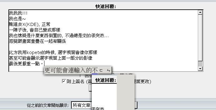比方我用kopete的時候, 選字視窗會像你那樣