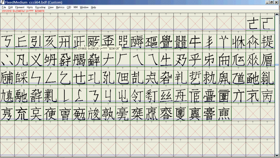求助!我從Google搜尋 "CCCII-font",有人已經把CCCII 64x64 字符打包成 BDF 檔案,