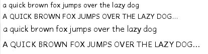 上圖分別是16px, 12px, 8px(下右)大小的Andika字型,16/12px各有三組由上而下分別是BCI hinting, no hinting與autohint。(GIMP可以分別開啟) 感覺大字型開hinting似乎頗糟。(FreeType 2.3.4 under FC7) | |||||||||||||||